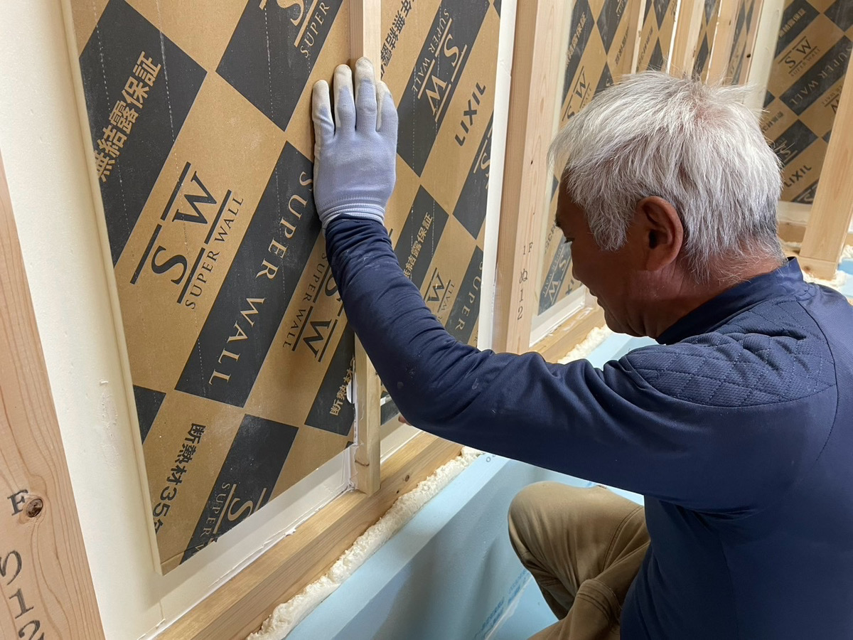 先日上棟した愛南町N様邸はSWパネル(断熱材)、基礎の断熱工事中です。