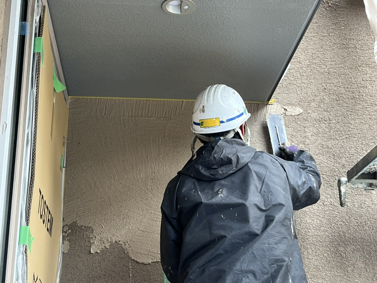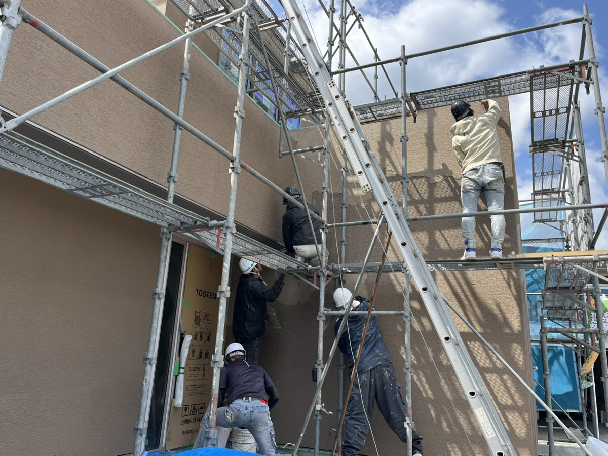 鬼北町A様邸は先日、塗り壁の工事が終わりましたので、A様と一緒に現場の確認に行ってきました!