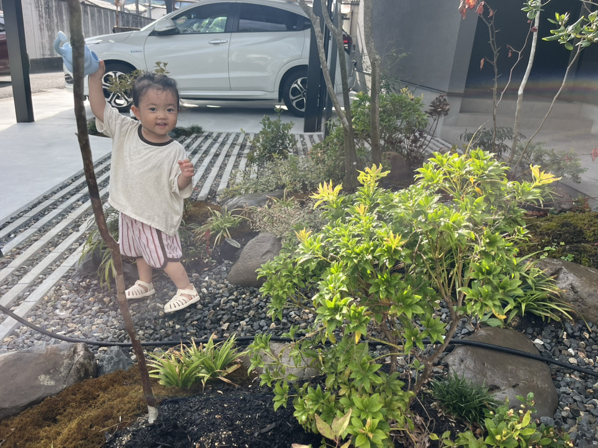 お母さんと一緒にお庭の水やりのお手伝いをしていますよ♪