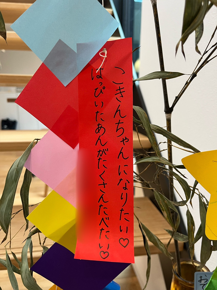 「ふくちゃん、おいで!」と、娘様にお家の中に案内され、願い事を書いた短冊を見せてくれましたよ♪