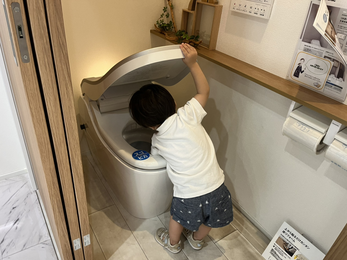 展示品のトイレに手をつっこんでみたり♪