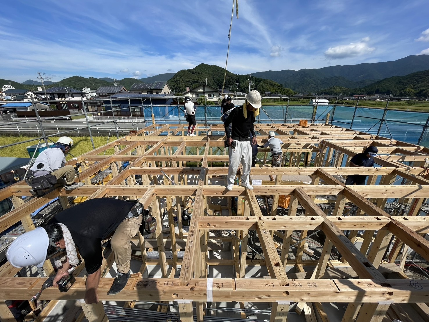BLOGブログ 赤松 09/22(月) 祝・上棟!!(三間町N様邸) アンカーホームデザインの赤松流空です。 先日、三間町N様邸で上棟が行われました! まずは、朝礼を行い、いよいよスタートです、ご安全に!! 始まると、大工の皆さんが慣れた手つきで柱を立てていきます。 ものの数時間で、梁が架け終わります。 随時、家の様子をご確認頂き、休憩中は楽しくお話させて頂きました! 夕方には無事に上棟が終わり、お施主様と一緒に、室内を確認しました! 記念に柱にメッセージを書いてもらいました! N様、上棟おめでとうございます! PREV NEXT 一覧へ戻る