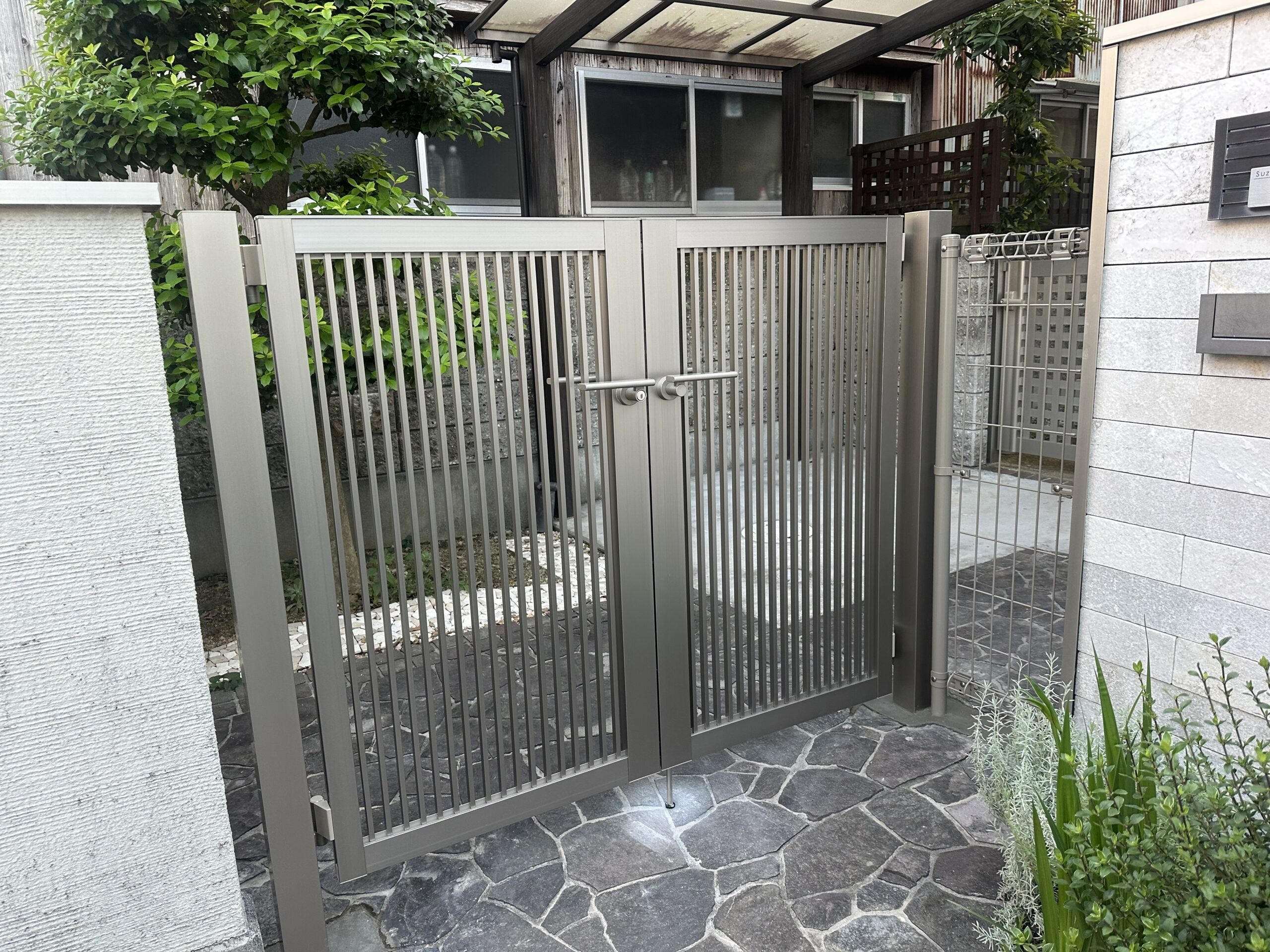 また、駐車スペースとは別の通用口になるアプローチにも両開き門扉を併設。