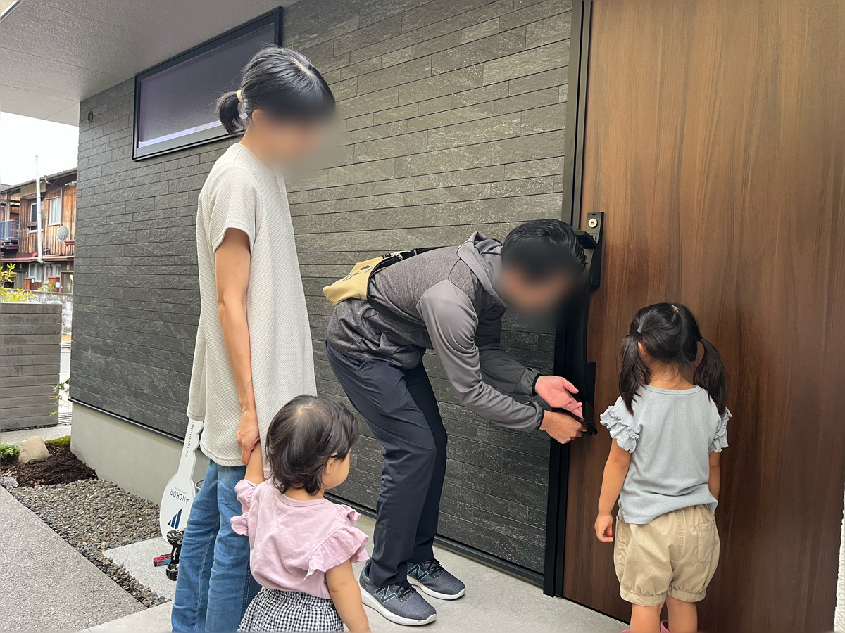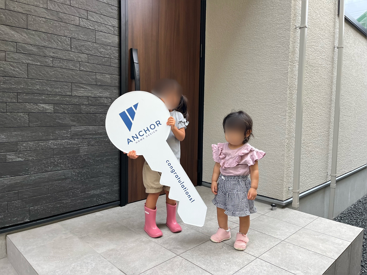 まずは、アンカーホームデザインの鍵パネルを持ってもらって記念撮影♪