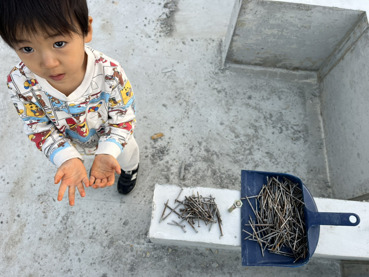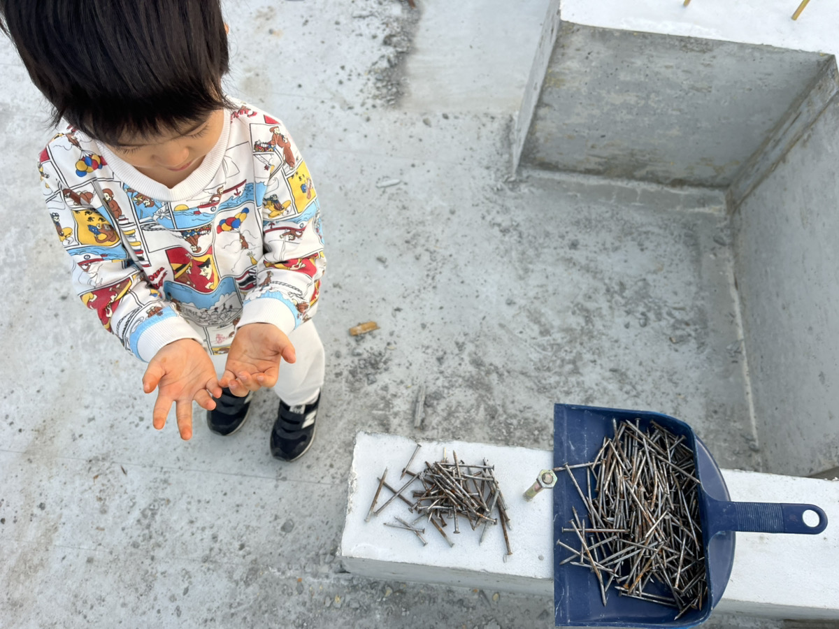 元気なお兄ちゃんも一緒に釘拾いをお手伝いしてくれましたよ!