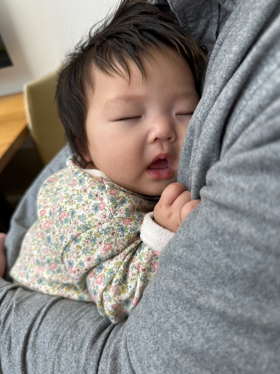 妹ちゃん、打ち合わせの間、ご主人様に抱っこされてご機嫌です♪