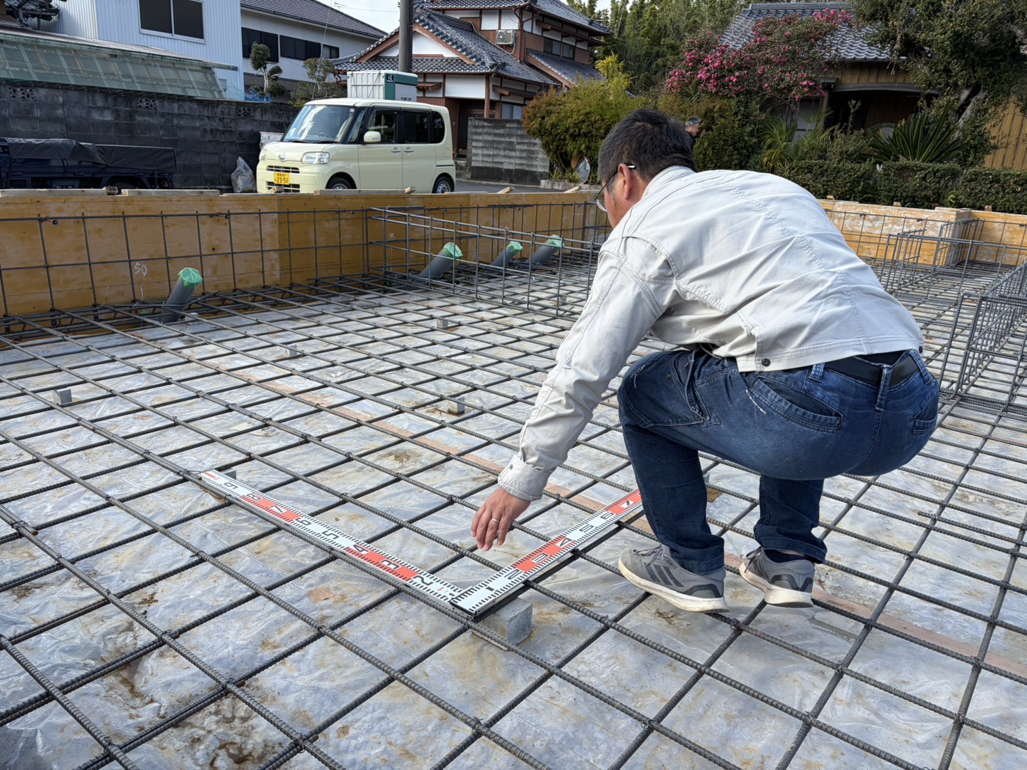 愛南町Y様邸では、配筋工事が完了し、本日検査を行いました!