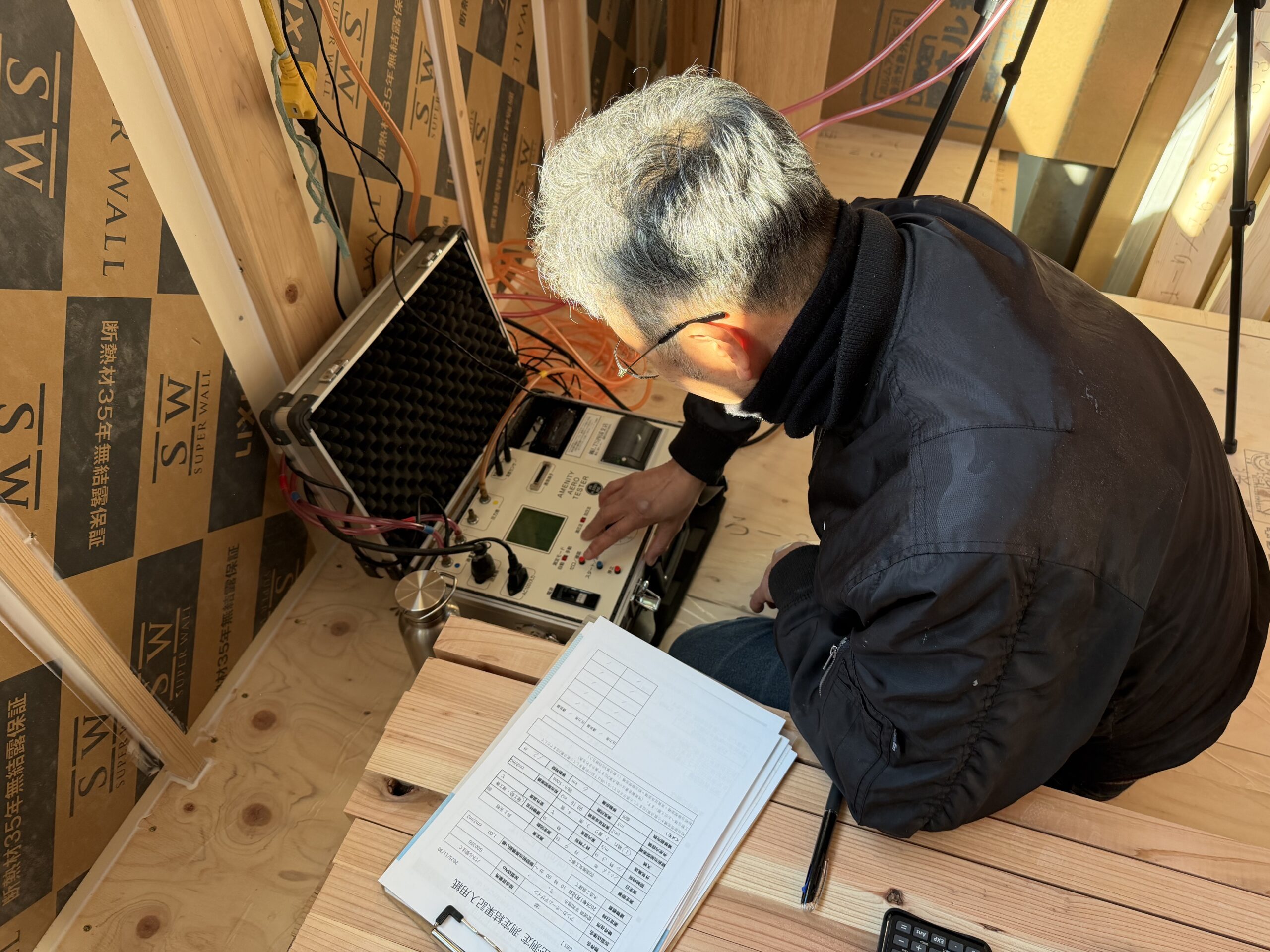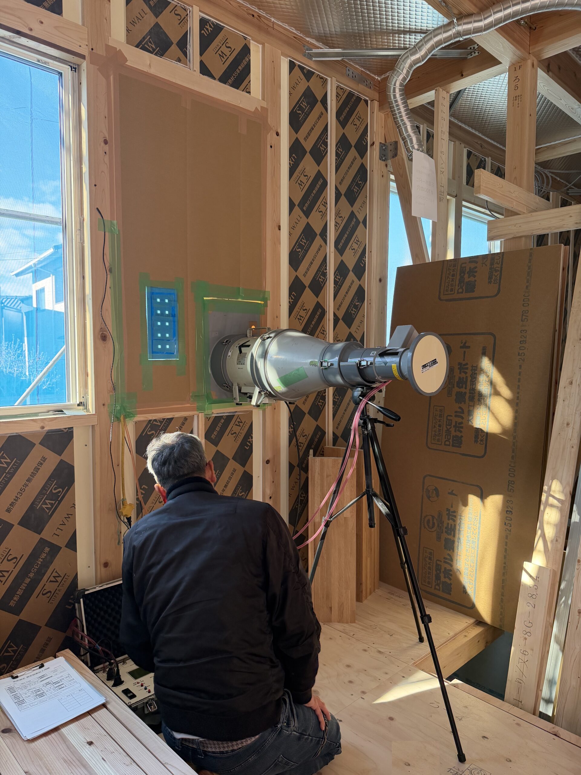 先日、宇和津町分譲地にて建築中のM様邸にて、気密測定を行いました!