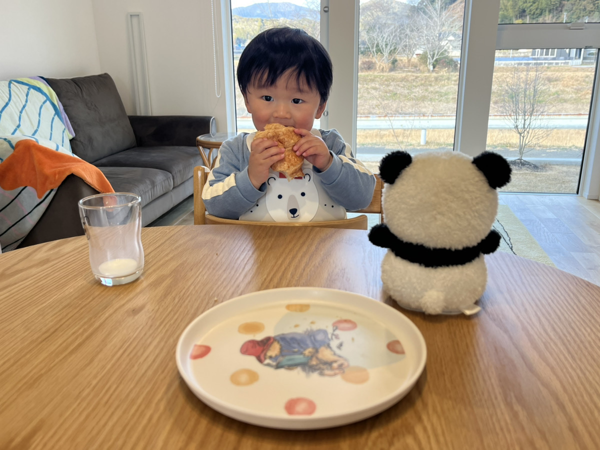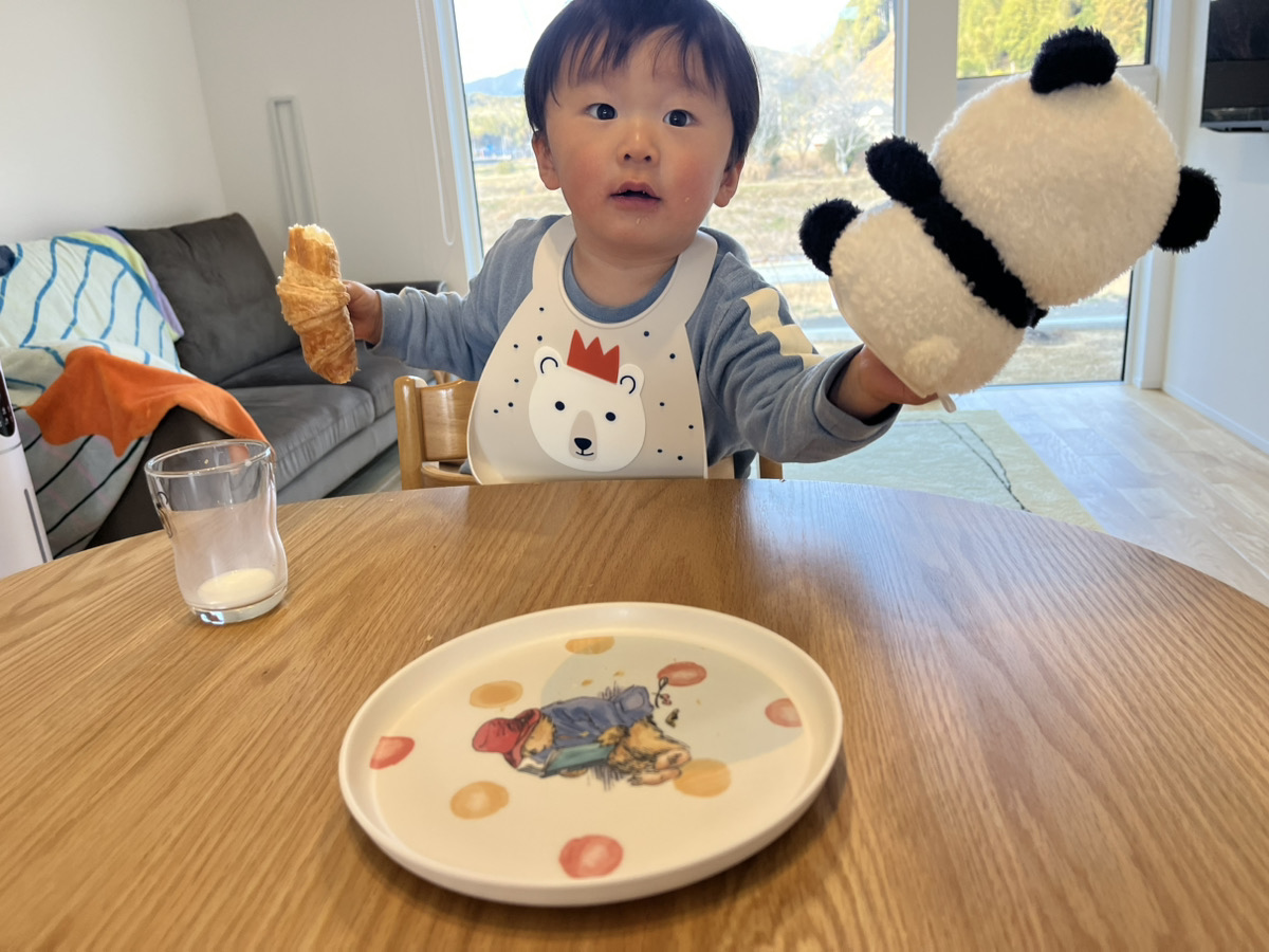 なかなかの勢いで大好きなクロワッサンを頬張り、なかなかの勢いで大好きな牛乳を飲み干しましたよ♪