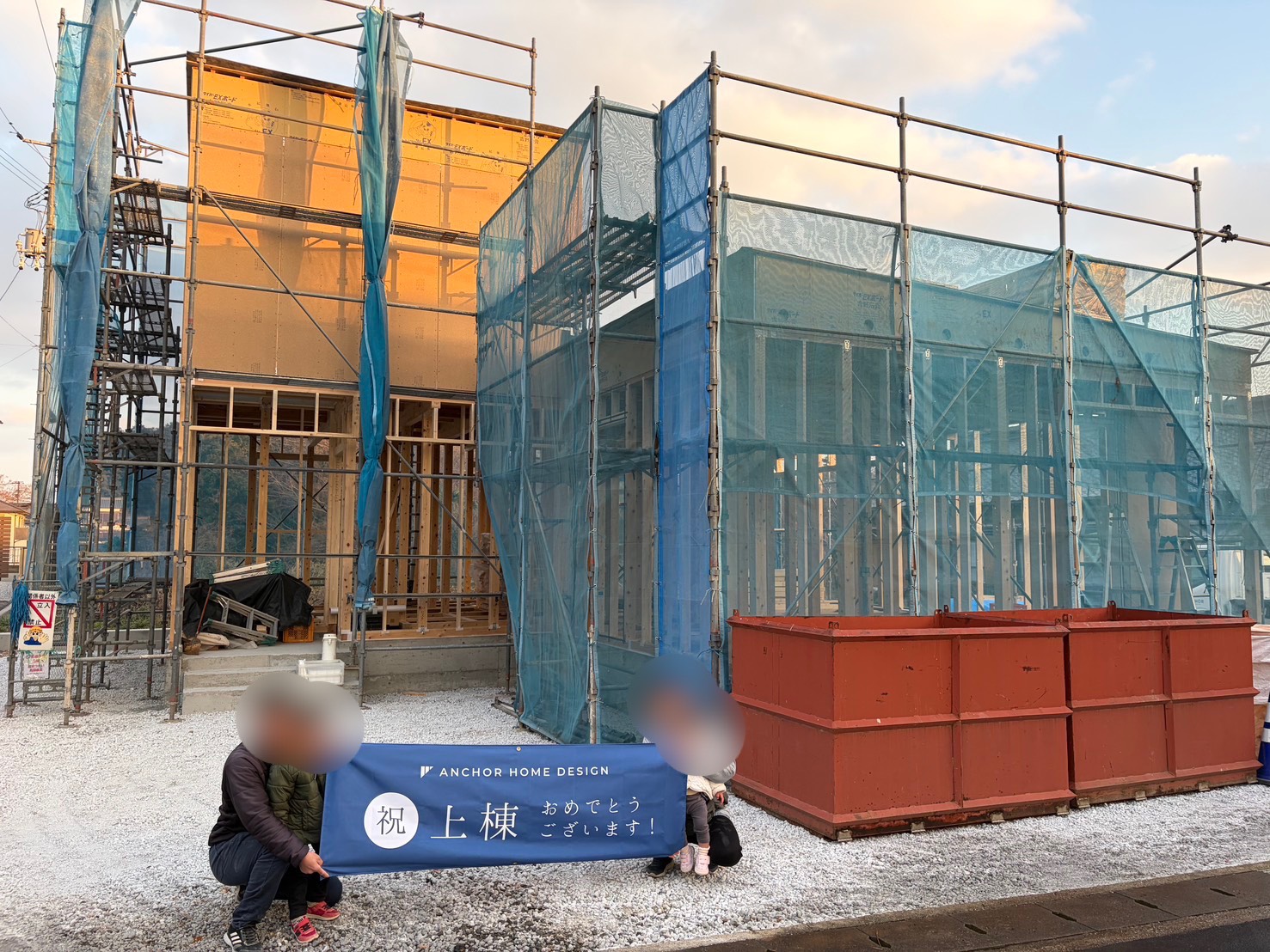 棟上げが終わった後は、Y様と一緒に室内見学と記念撮影!