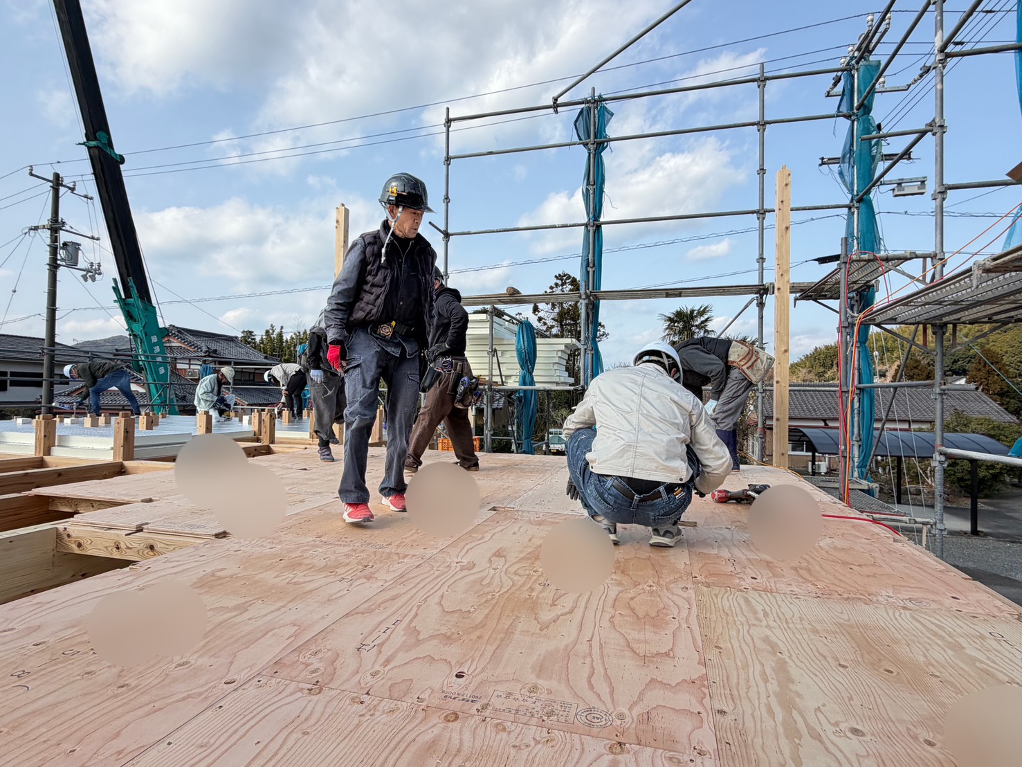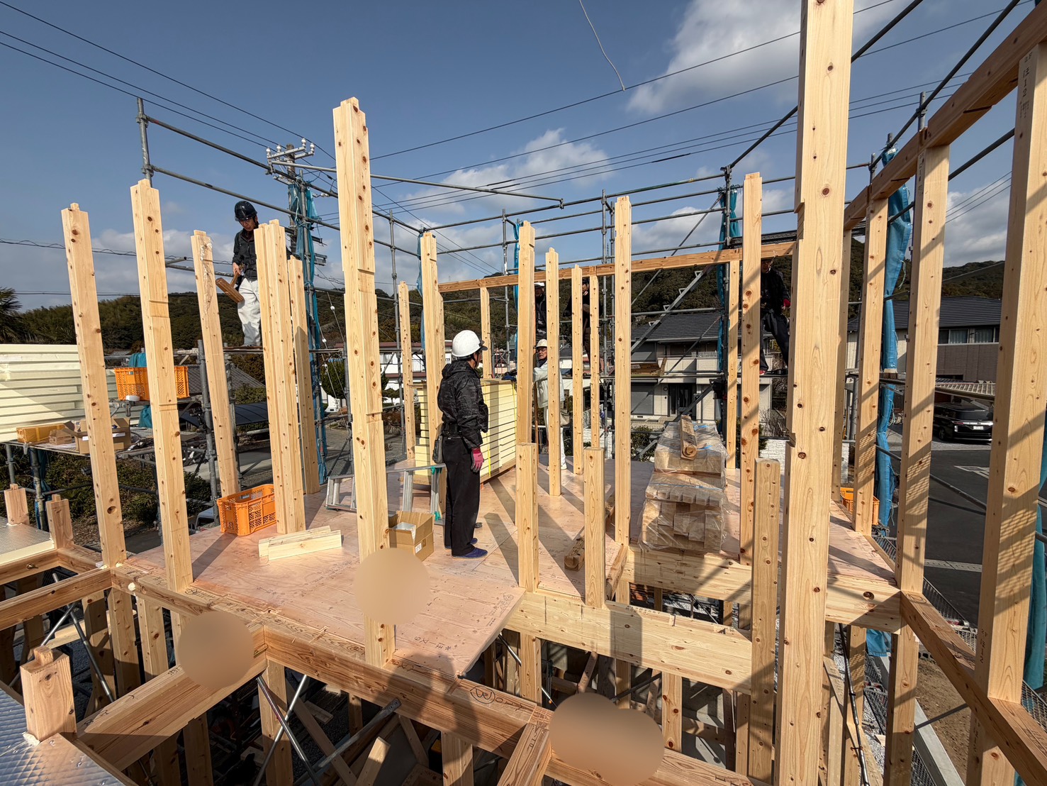 まずは柱を立ててその上に梁、2階の床・・・と大工さんが慣れた手つきで組み上げていきます!