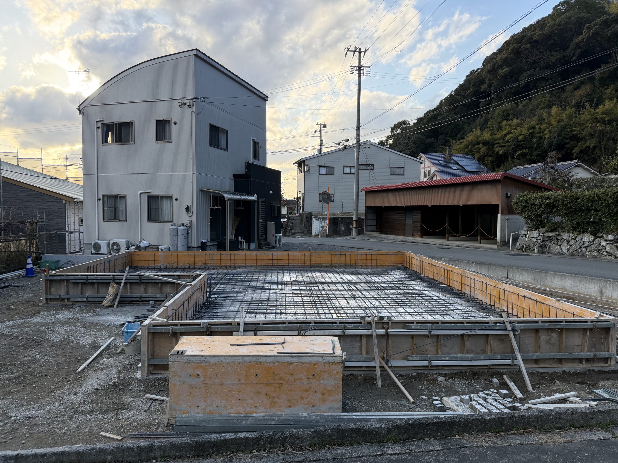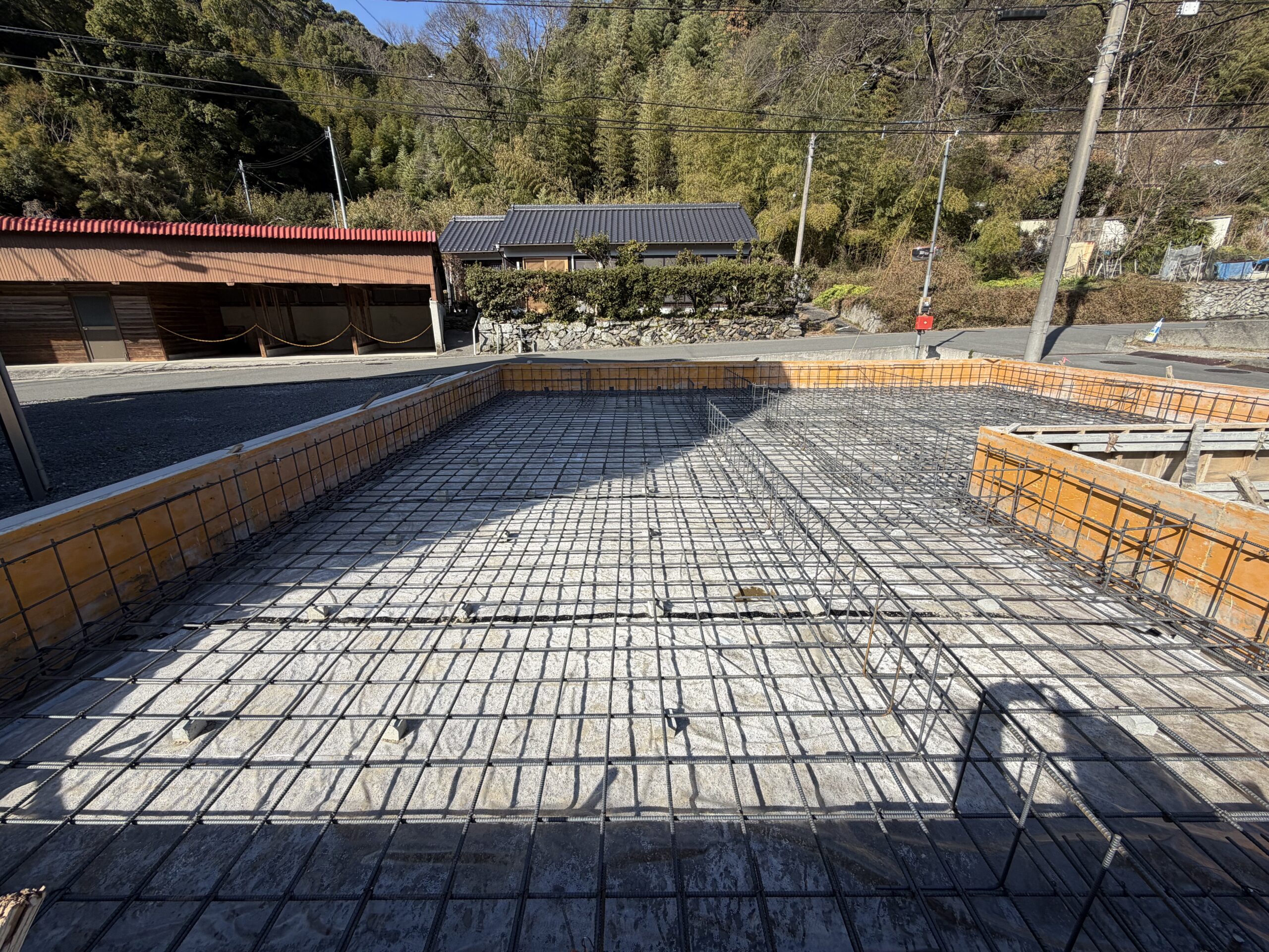 BLOGブログ 藤本 01/30(金) 宇和島市野川N様邸は基礎底盤の配筋工事中です! こんにちは!こんばんは!おはようございます! 営業設計の藤本です! 宇和島市野川で建築中のN様邸は、現在基礎工事中です! 先日、基礎底盤の配筋工事を行いました! 規則正しく、鉄筋が組まれていますね! 配筋のピッチや定着長さなど、基礎の工程にはチェックすべきポイントがたくさんあります。 配筋検査もOKでしたので、いよいよ底盤のコンクリート打設に進んでいきます! 順調に現場は進んでおります! PREV NEXT 一覧へ戻る