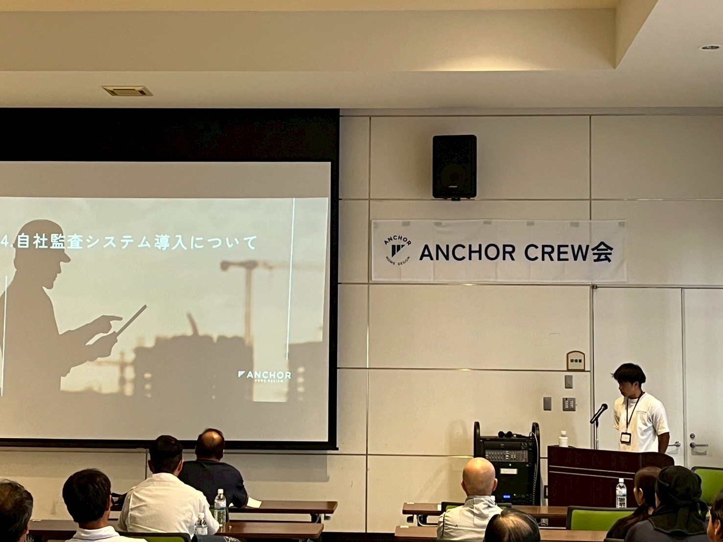 アンカークルー会は年に2回開催しているのですが、現場に入って工事をしていただく協力業者さんにお集まりいただき、弊社の取り組みについてお話しさせてもらったり、グループディスカッションを実施し、現場での改善提案などを弊社スタッフと協力業者さんとで真剣に話し合いをしています。