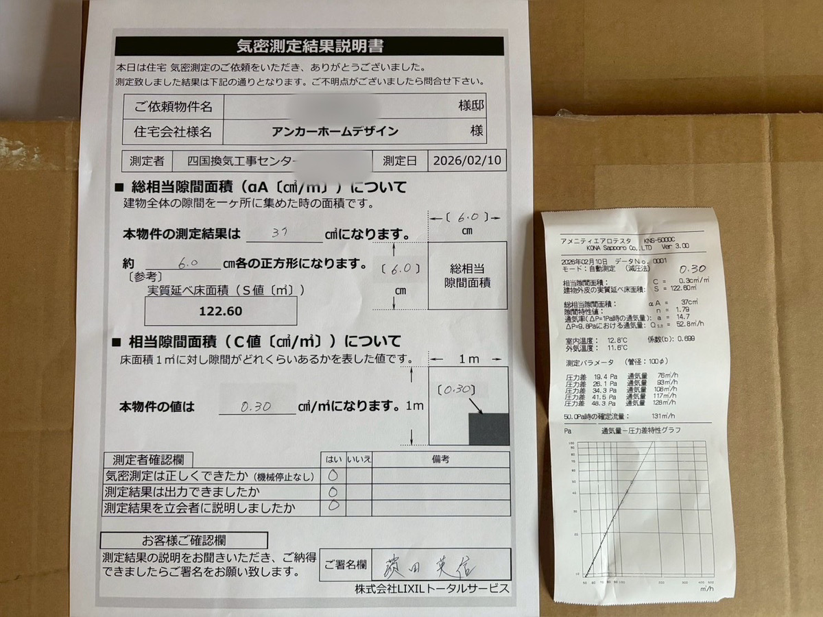 今回のC値は0.3で、家全体で6cm角の隙間しかありませんでした。
