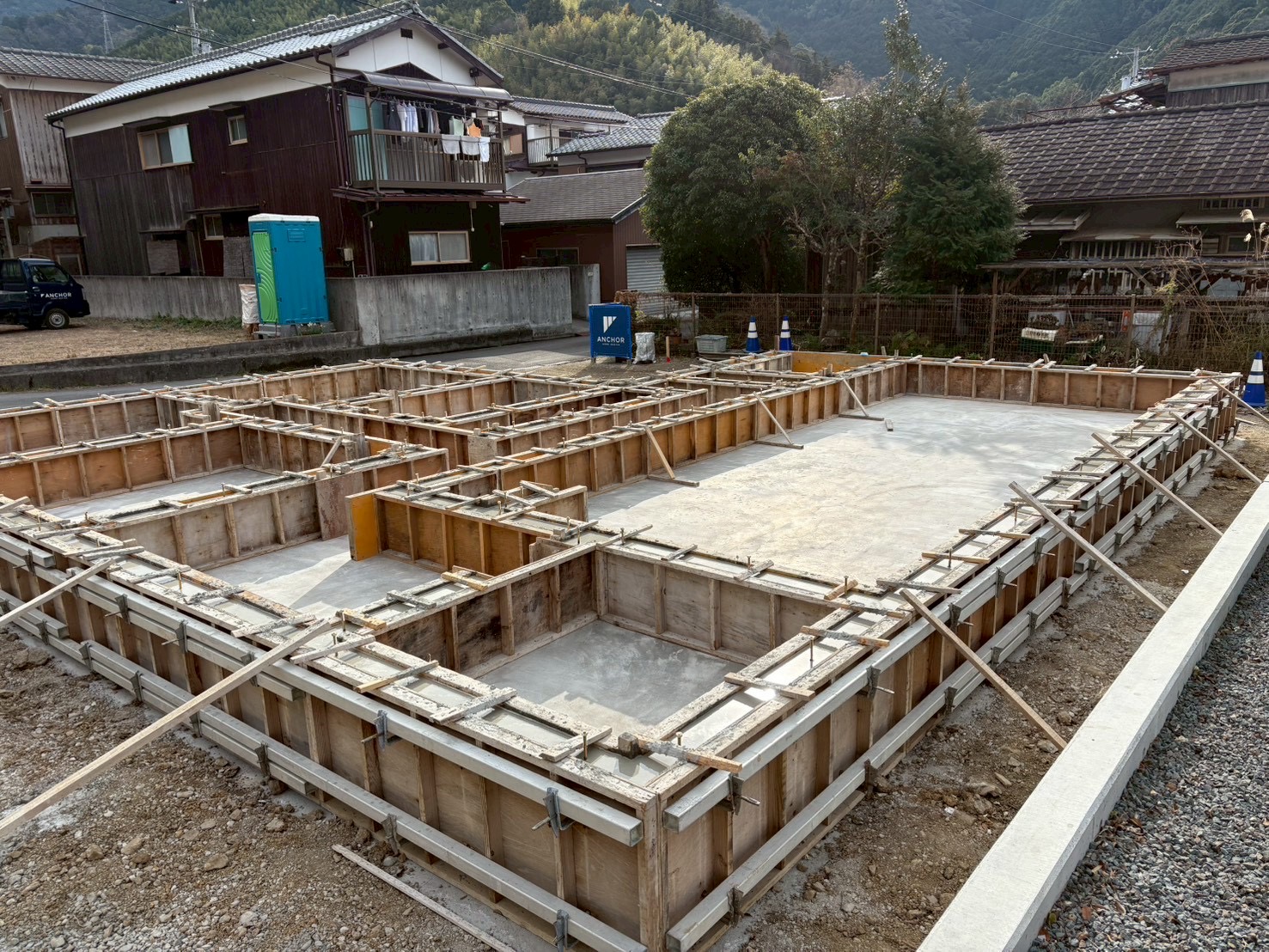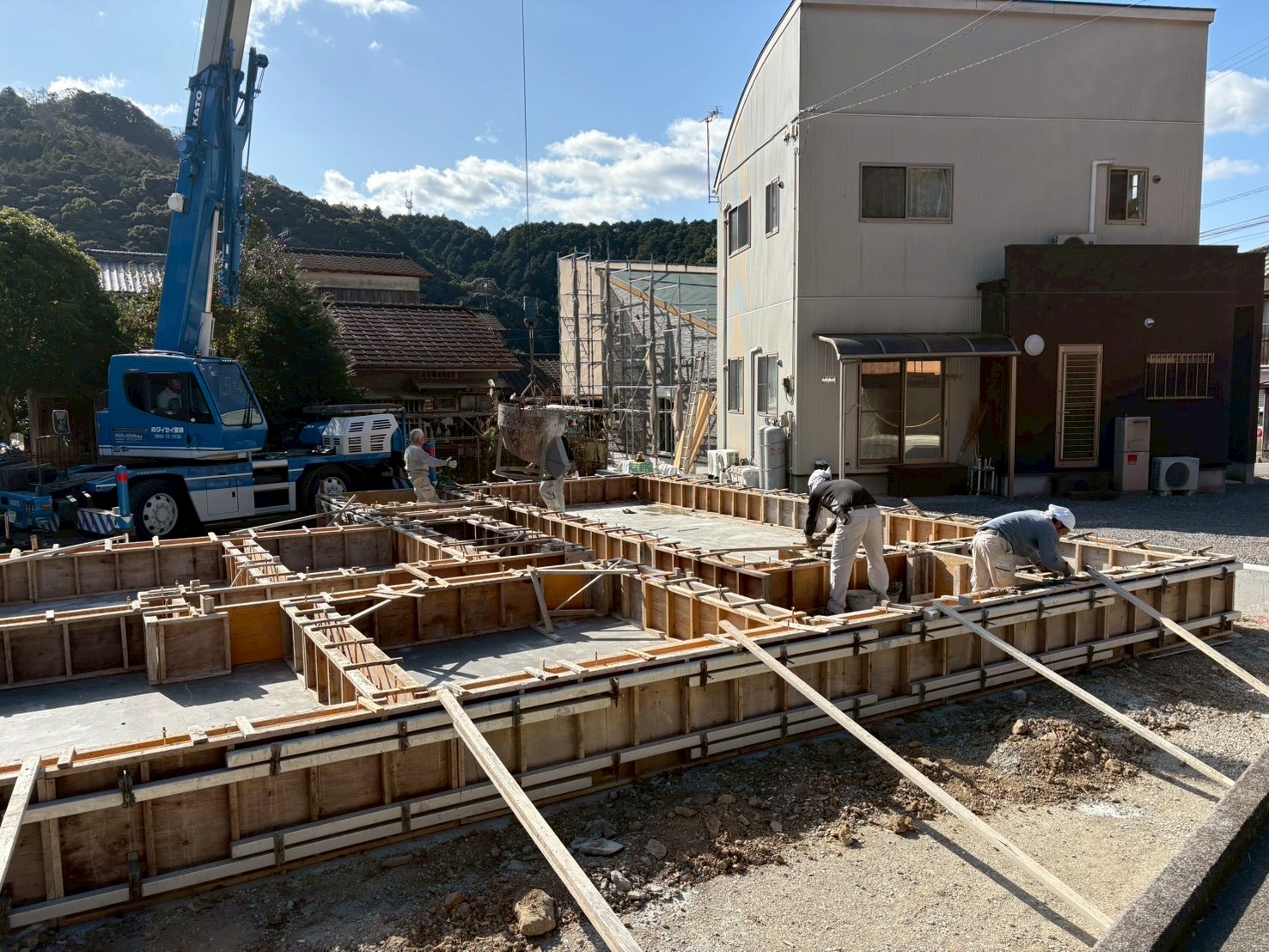先日基礎の立ち上がり部分のコンクリ―ト打設を行いました!
