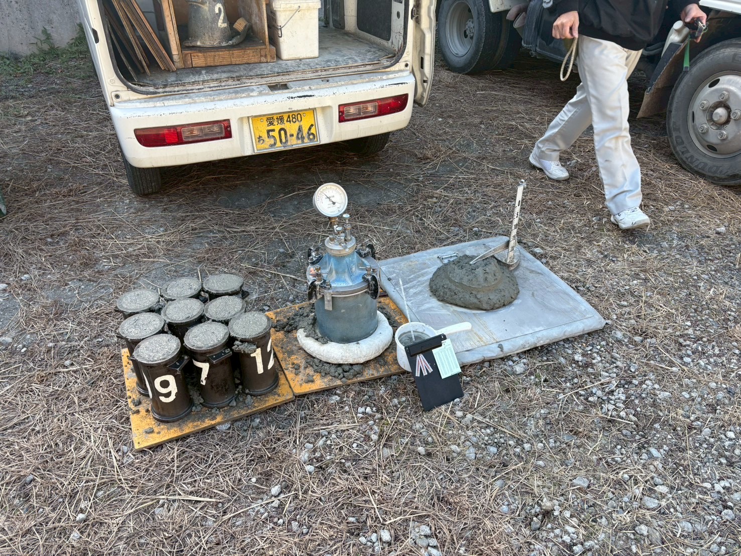当日打設したコンクリートのスランプ試験をしている様子です!