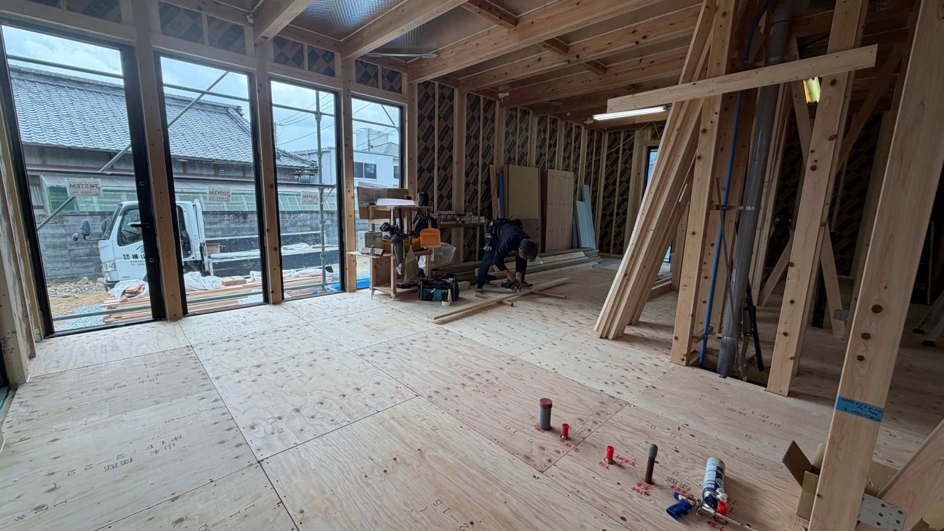 大工工事もどんどん進んでおり、お客様と現場見学した時には床が貼り終わっておりました!