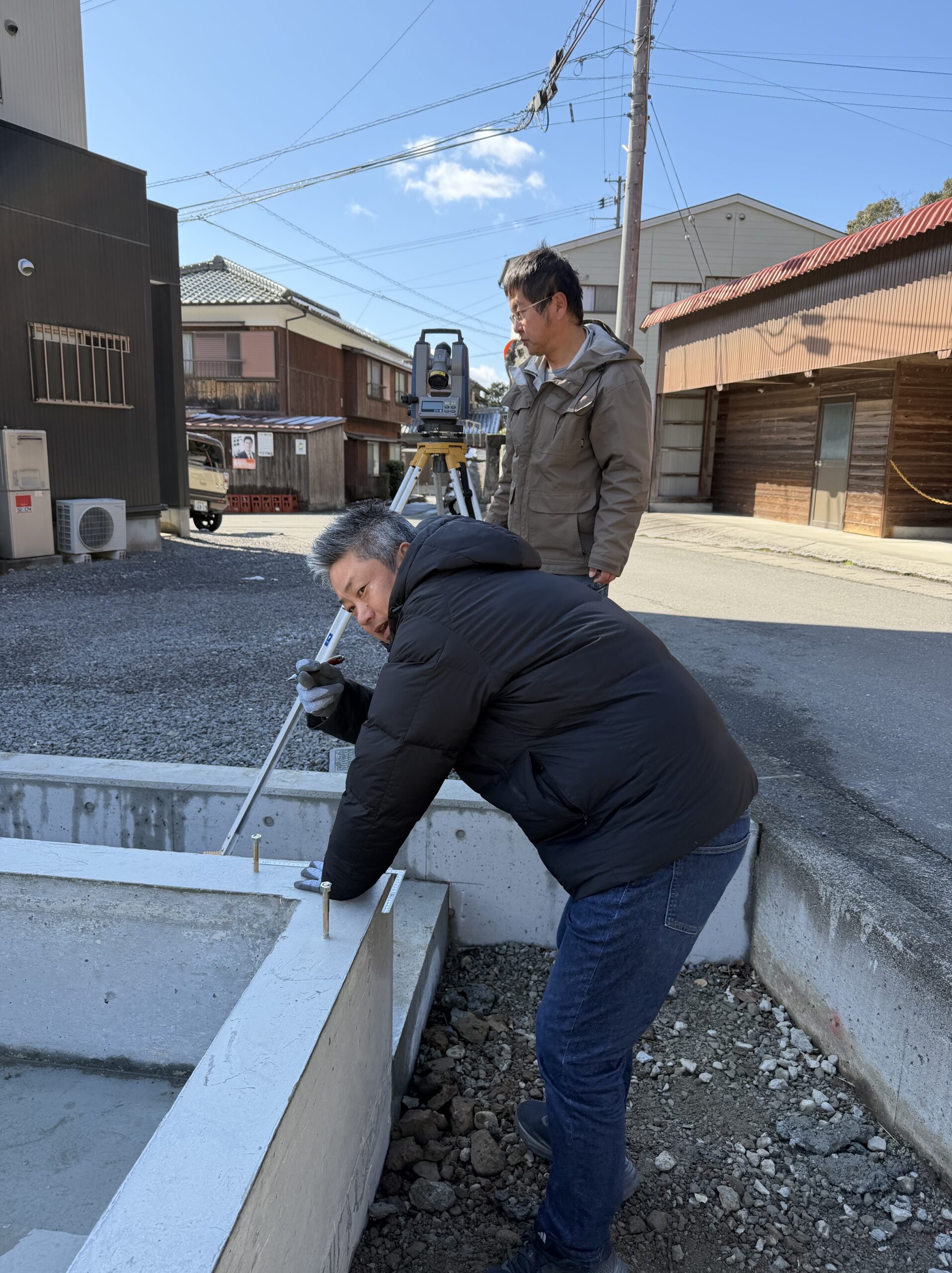 そして、型枠解体の数日後、2月末の上棟に向けて、土台の墨出しを行いました!