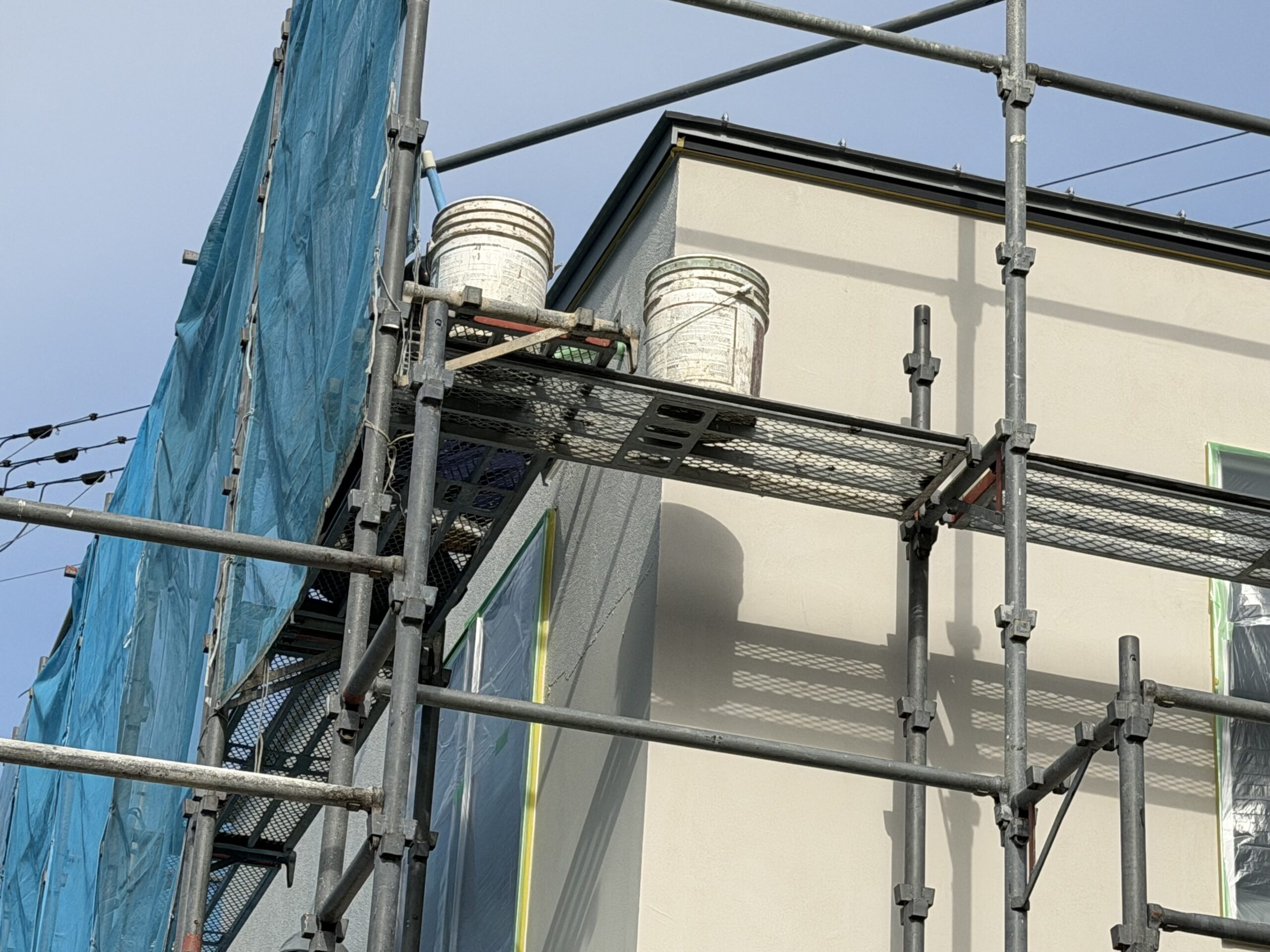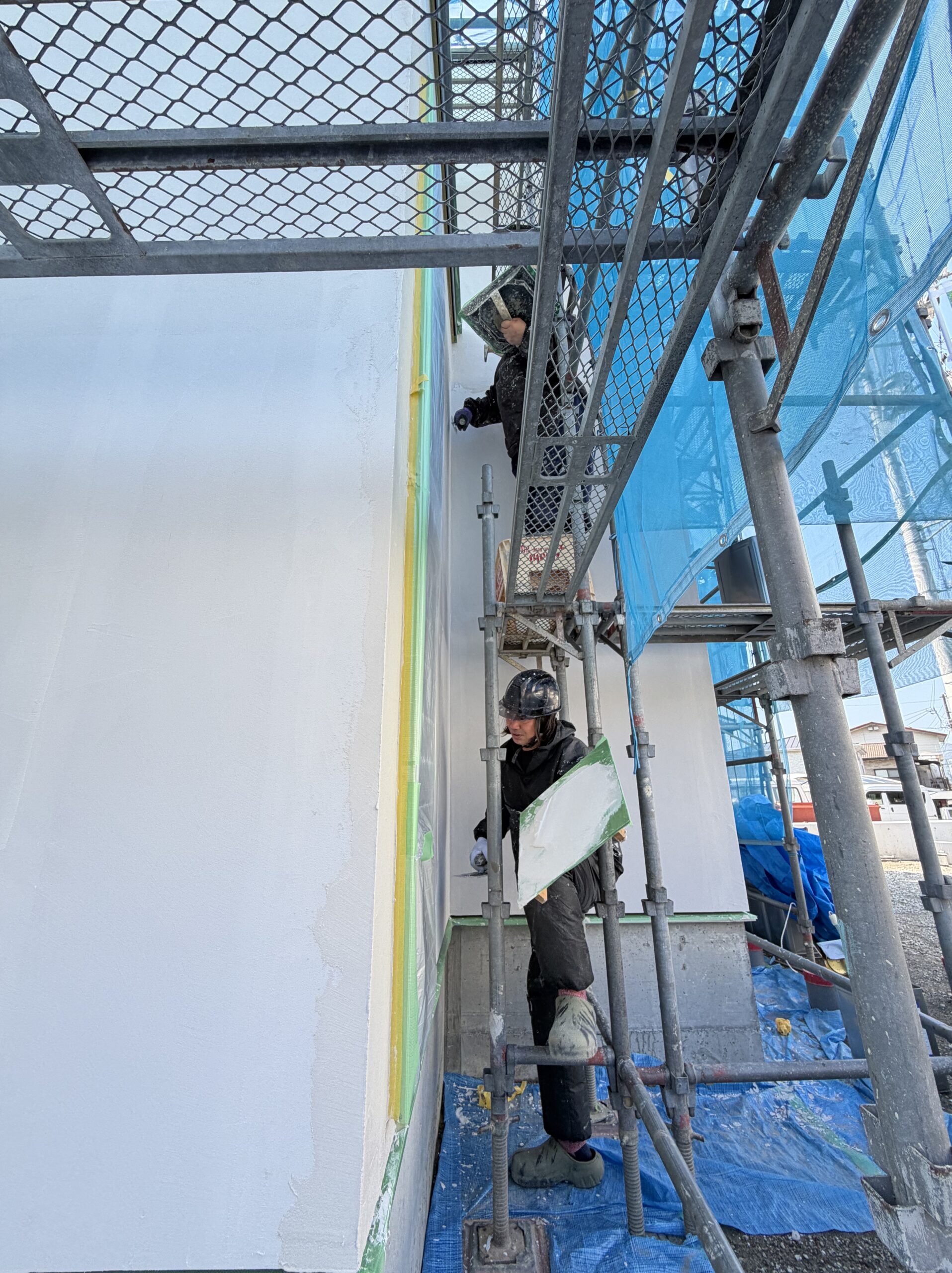 塗壁工事中は、天気にも恵まれ順調に仕上げまで完了しました!