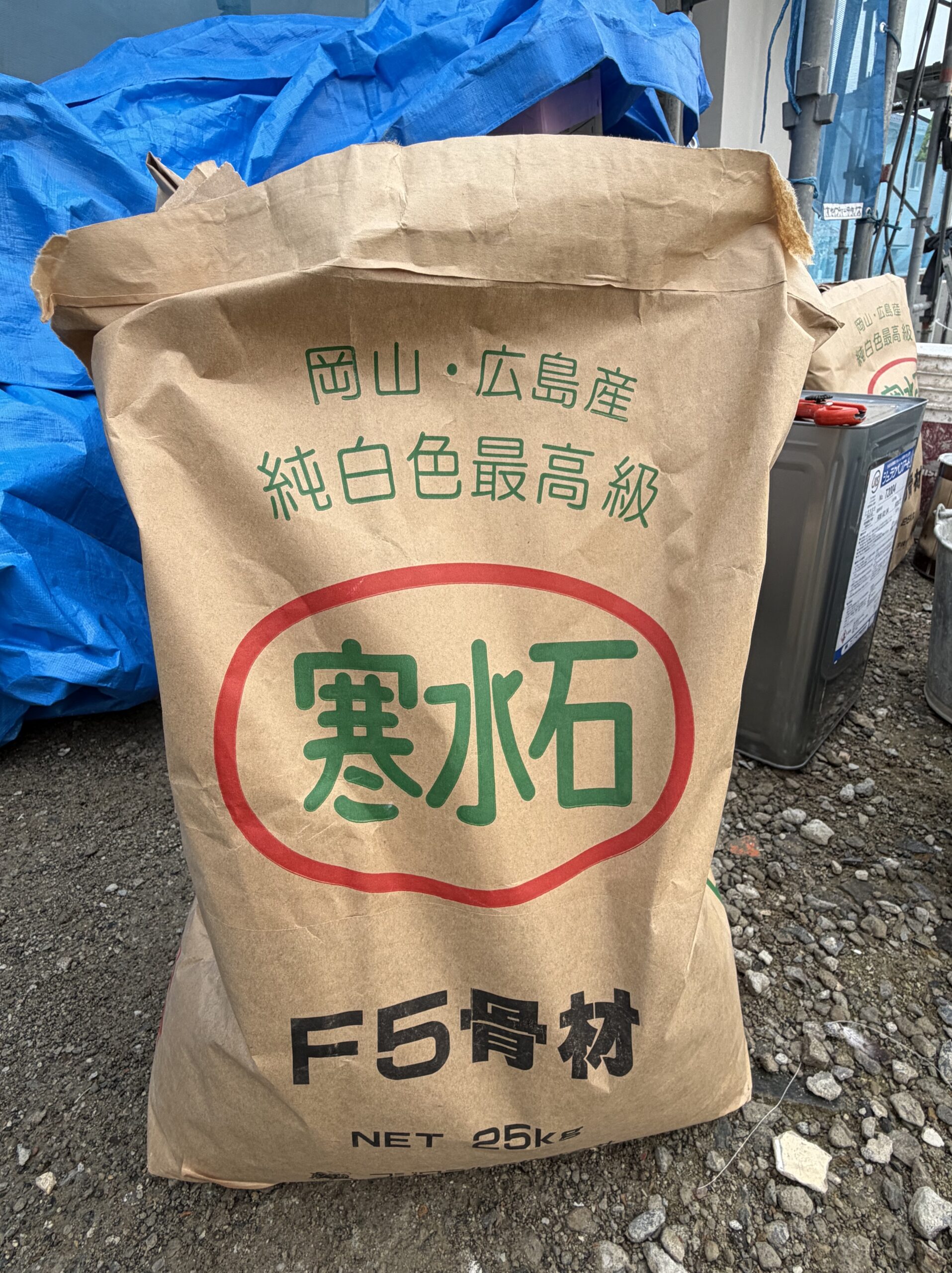 今度は骨材に寒水石(白い結晶質の石灰岩を粉砕・加工したもの)を混合させ、