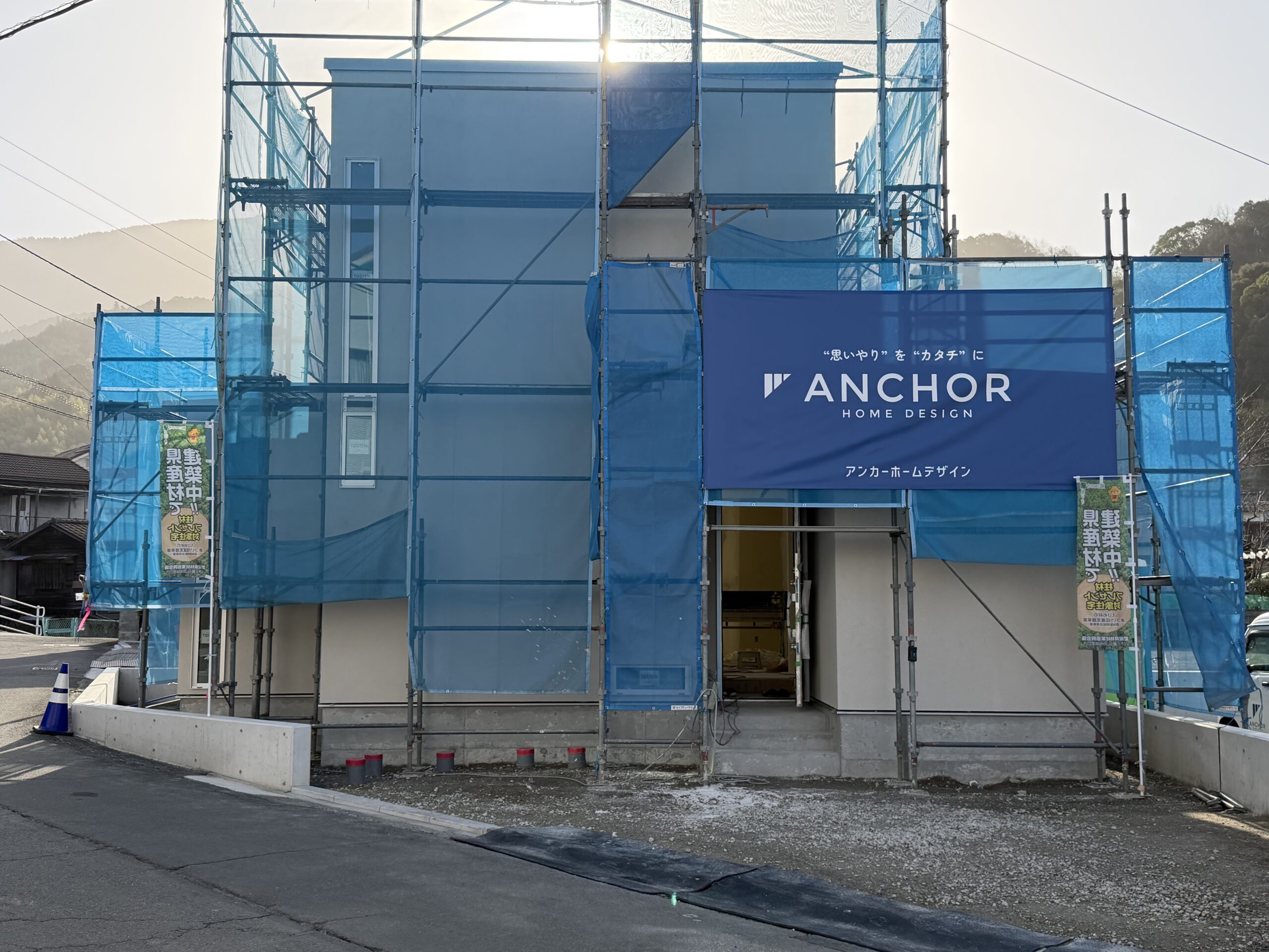 弊社の宇和津町分譲地にて工事中のM様邸の外壁塗壁工事は、