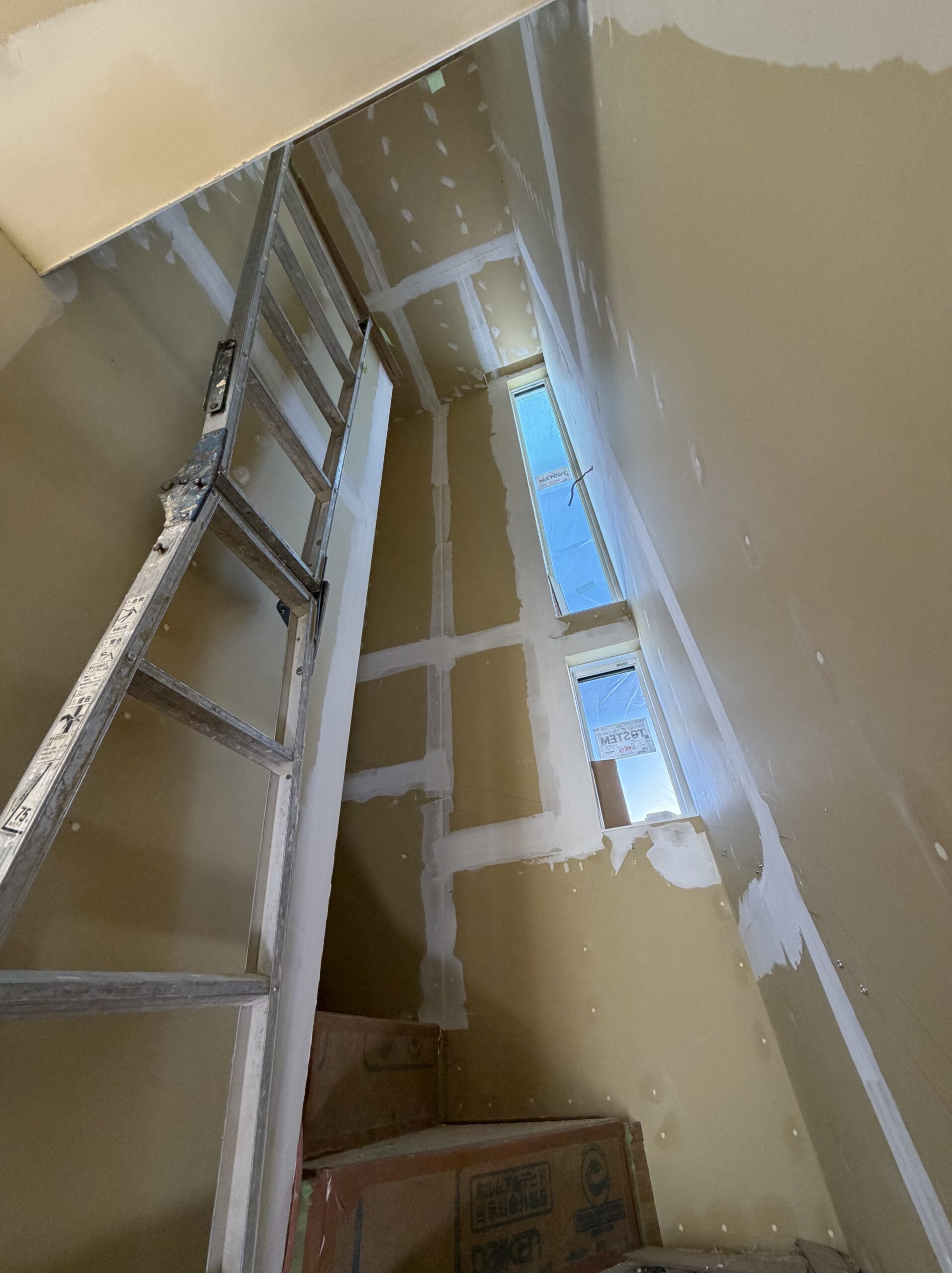 階段の吹抜部分のように高さのあるところは、脚立を使っての作業になるので、