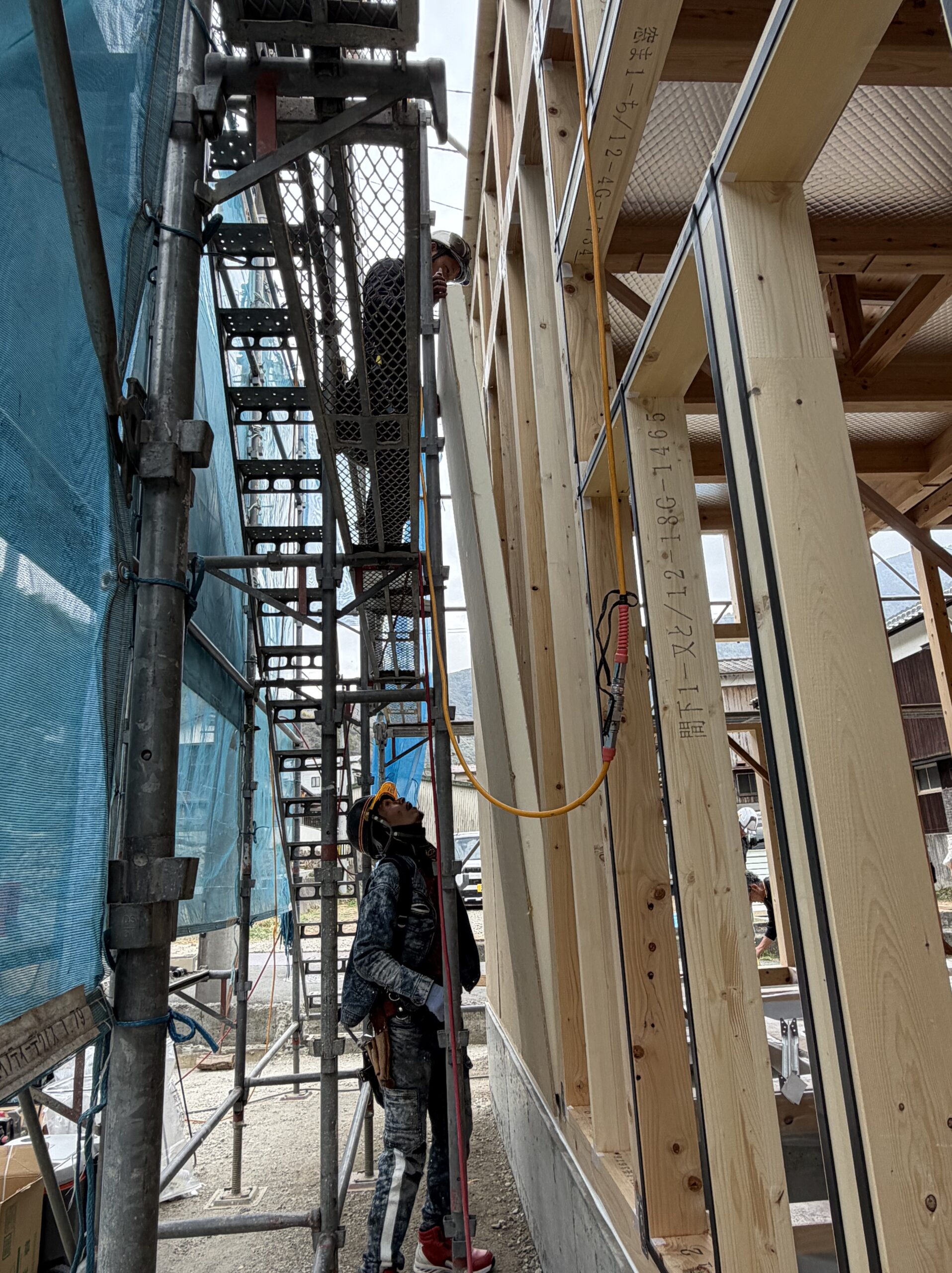 ここも、社長自ら梁上に上がり作業しています。顔が真剣…。