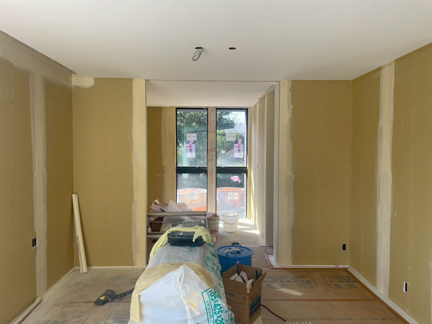 私が行った時には、すでに天井のクロスが貼られており、壁のパテ埋めも完了していました。