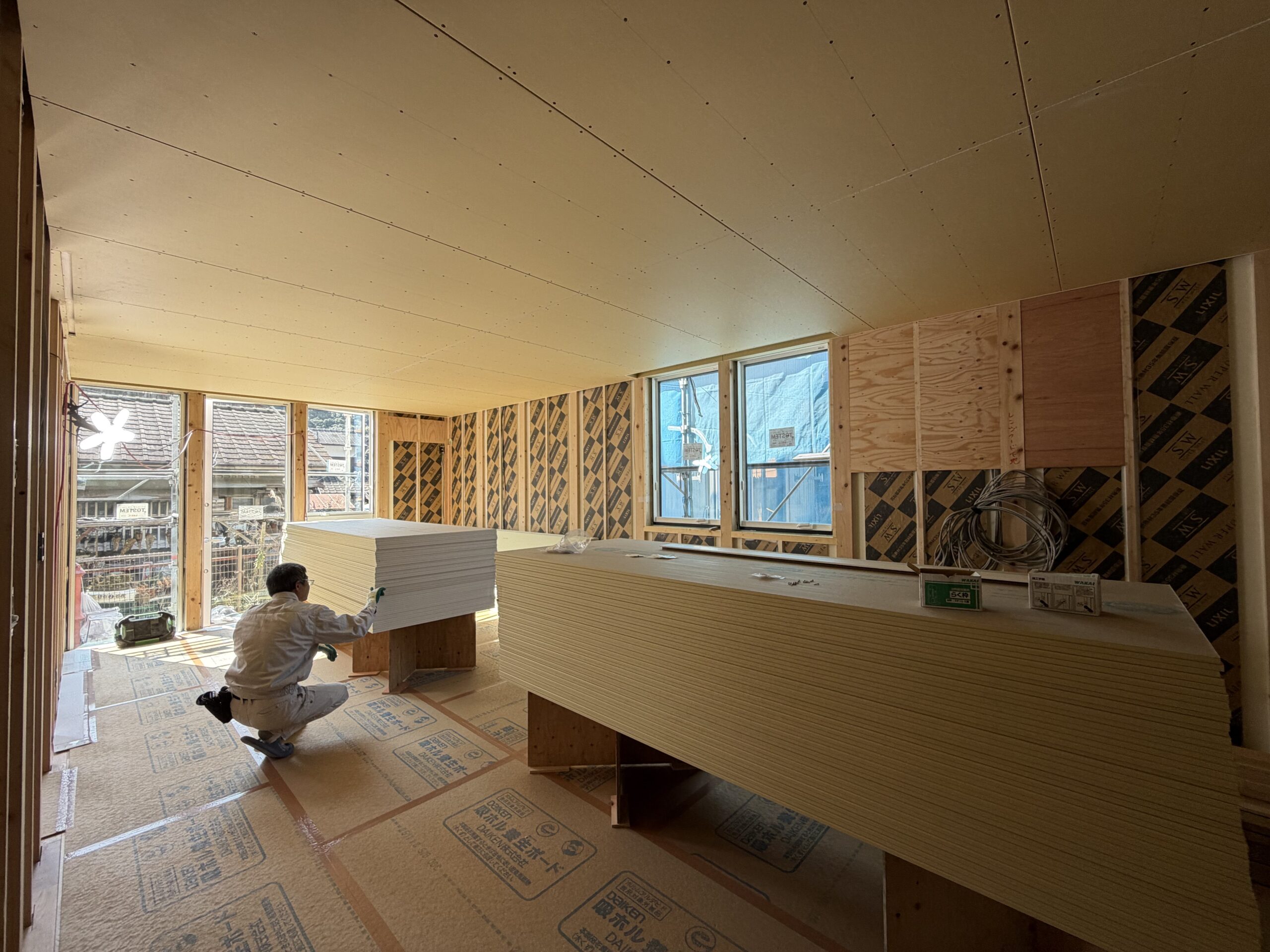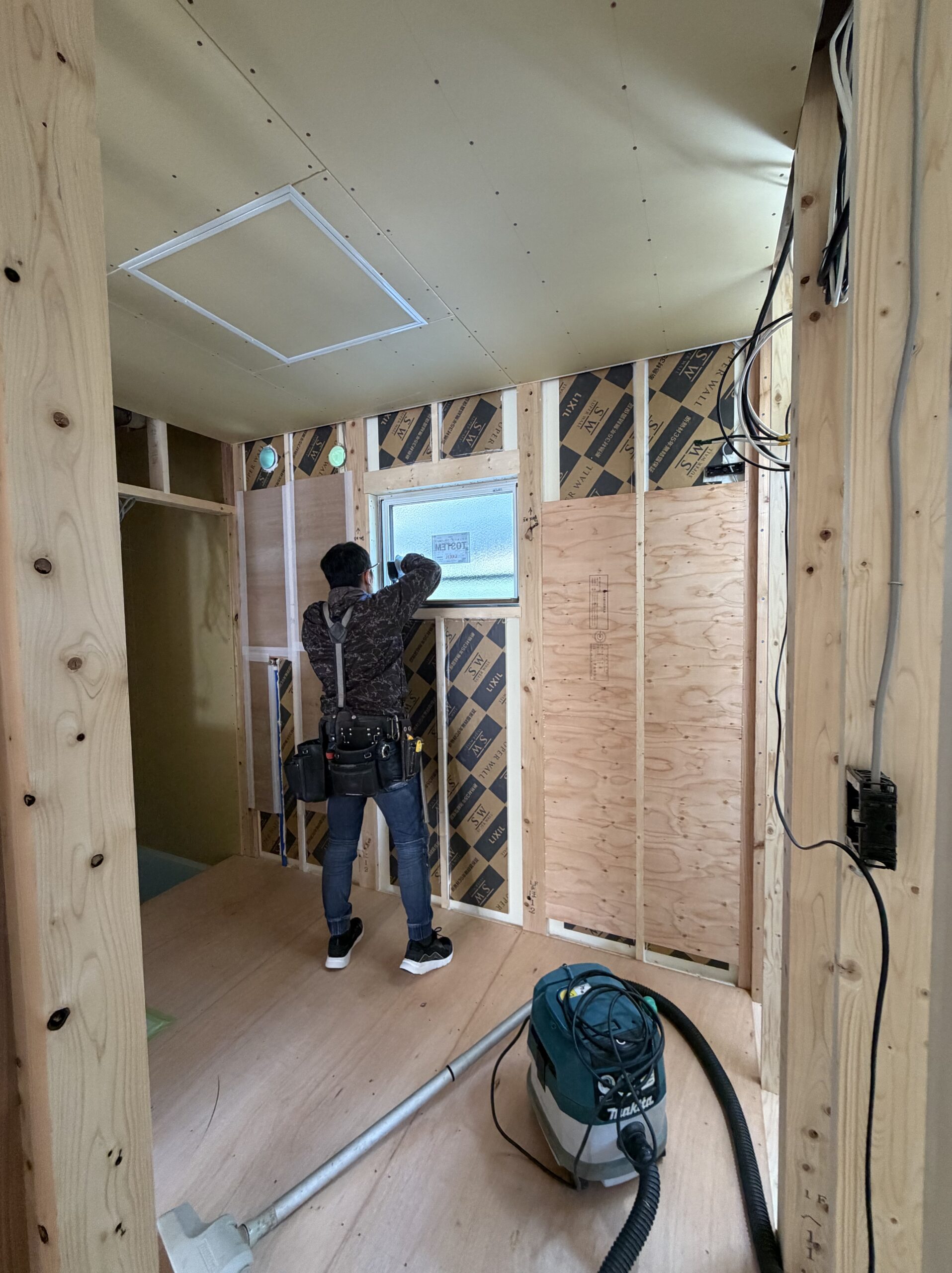 そうです!いよいよ壁の石膏ボードを貼っていく段階になりました…が、